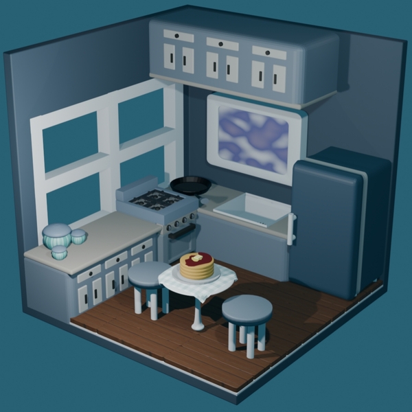 Stylized pond with an old wooden boat - Day and Night versions (Cycles, 3D)